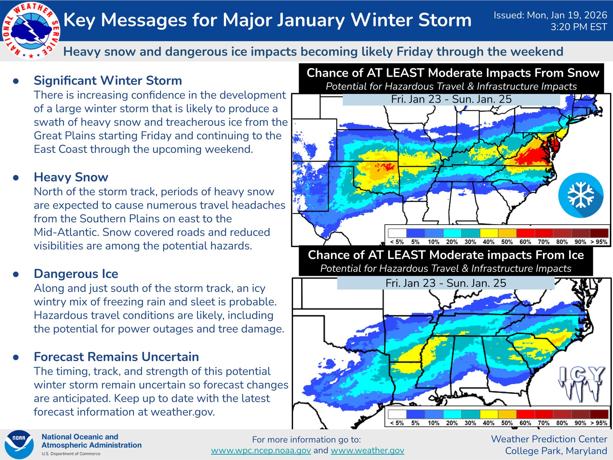 Officials emphasize that while the forecast will continue to evolve, taking action now can reduce risks if winter weather develops. Residents are encouraged to monitor updates from the National Weather Service and local emergency management agencies in the days ahead.